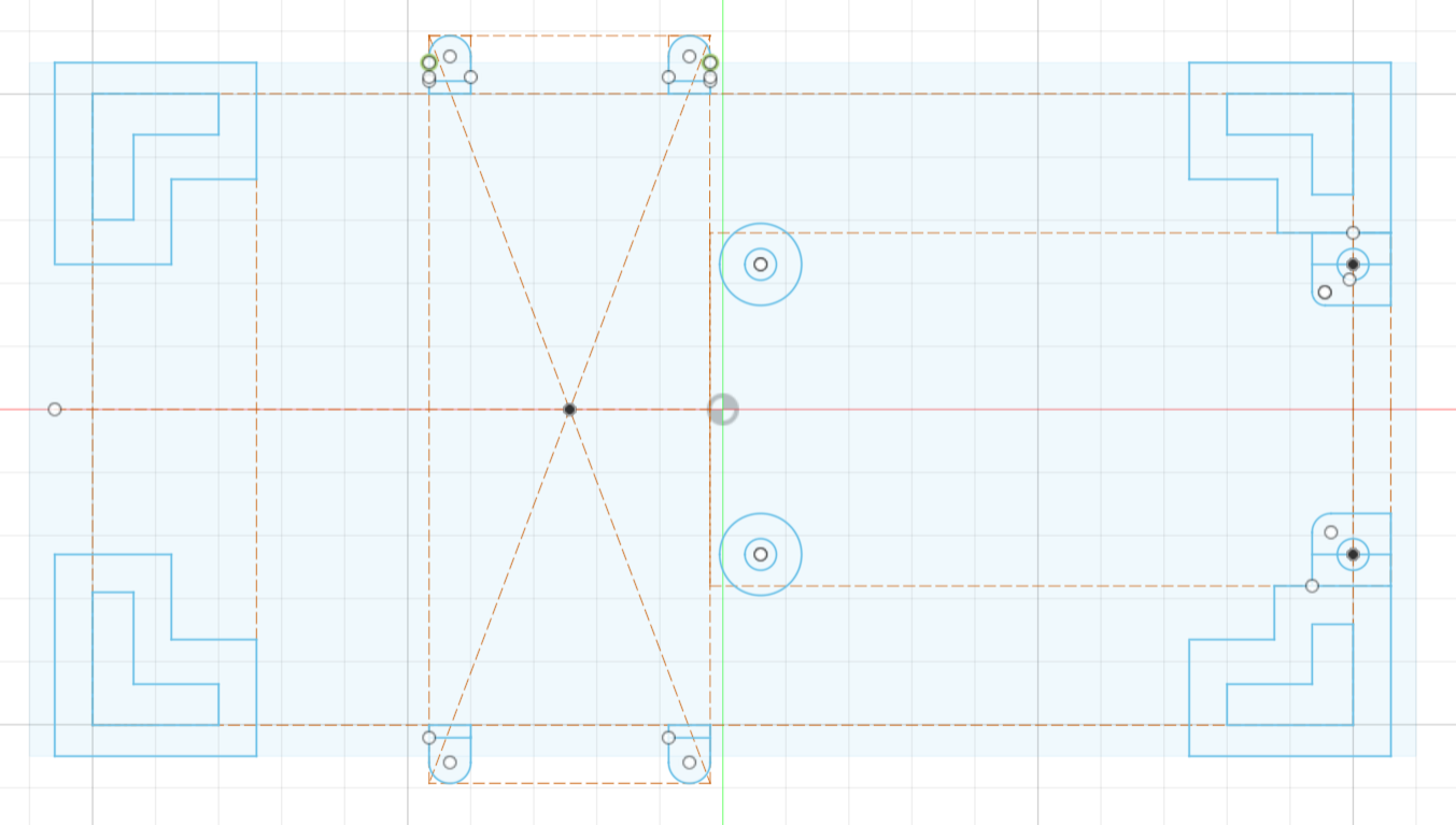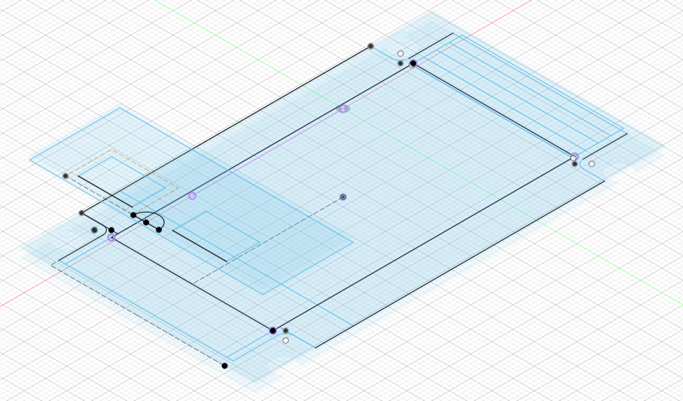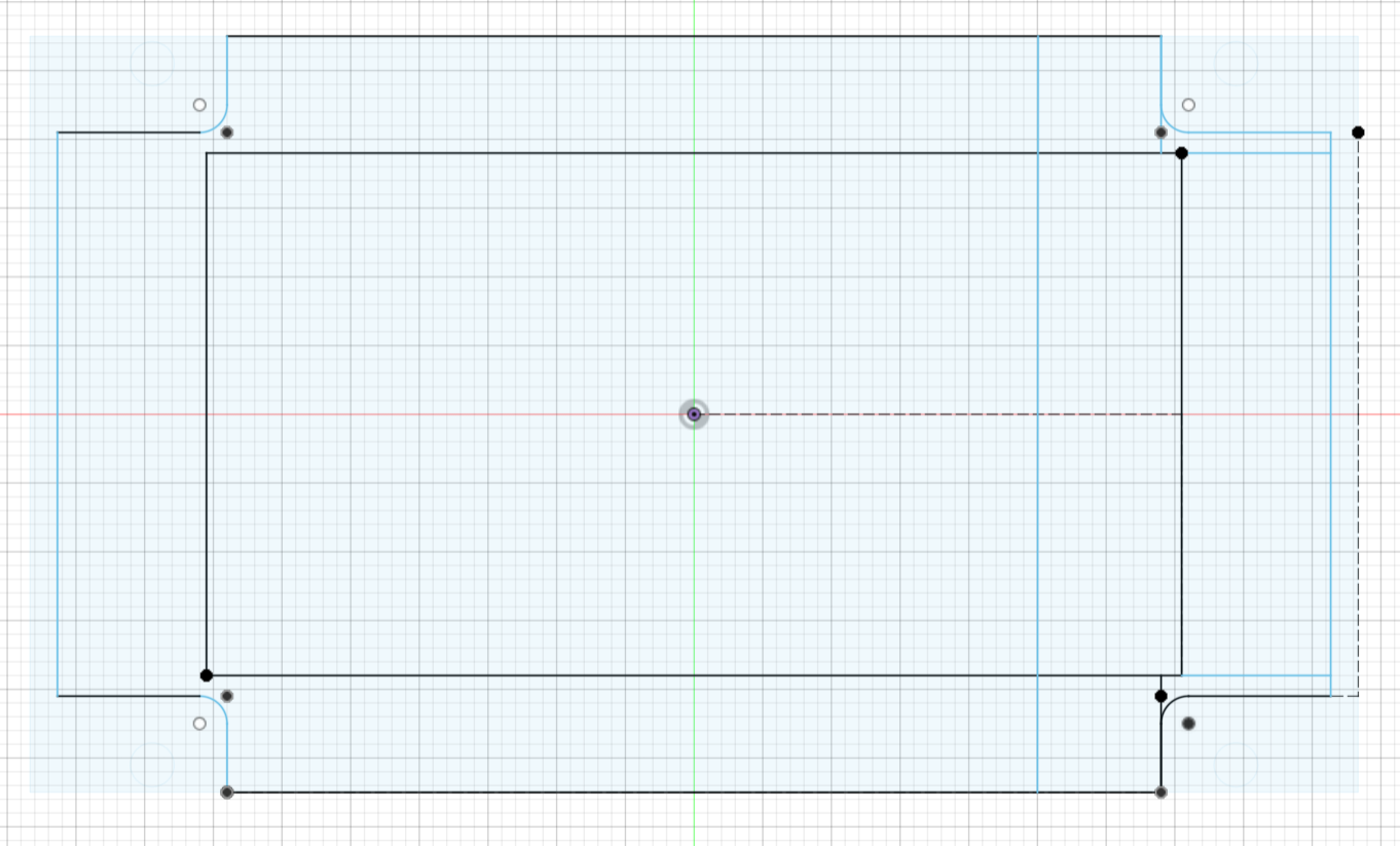 During the entirety of this design process, the dimensions of the counterparts to the screwholes had to be kept in mind. To aid this, the main sketch excludes the area underneath them.