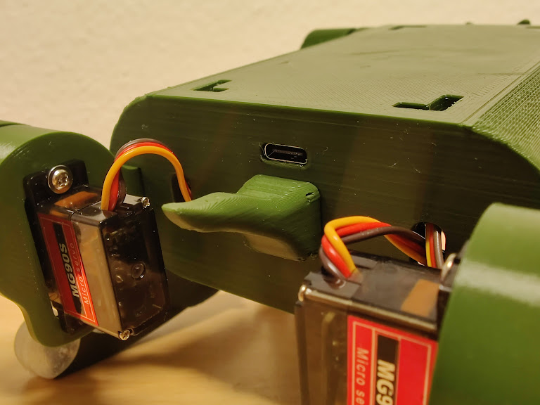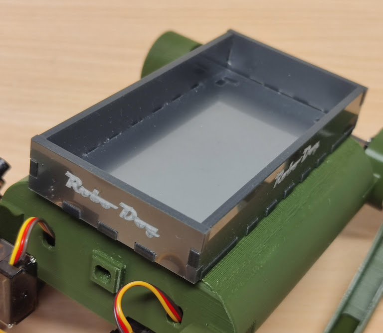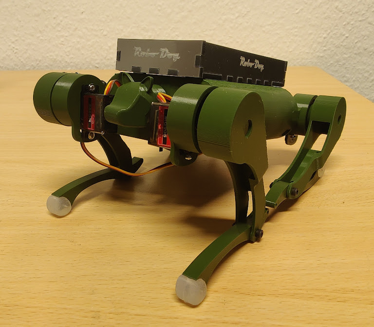 We planned to implement the follow-feature via a radio-transmitter, held by the person to be followed, and receiver built into the Robo Dog. For carrying tools, a tray was to be made by laser cutting. And last but not least, the Robo Dog got cast silicone feet for enhanced traction.