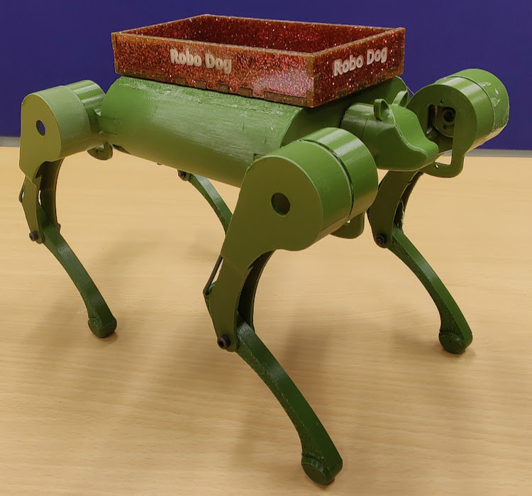 When we were looking for something cool to build as our final project for the production engineering course, Jan-Erik and I wanted to create something genuinely useful — so building a quadruped robot that could carry items and follow you felt like the natural choice. We settled on a template we found on hackster.io. In the following I will describe the changes that were made to the original design to accommodate for the additional components needed for the follow-feature, improve traction of the feet and implement the capability to carry tools.